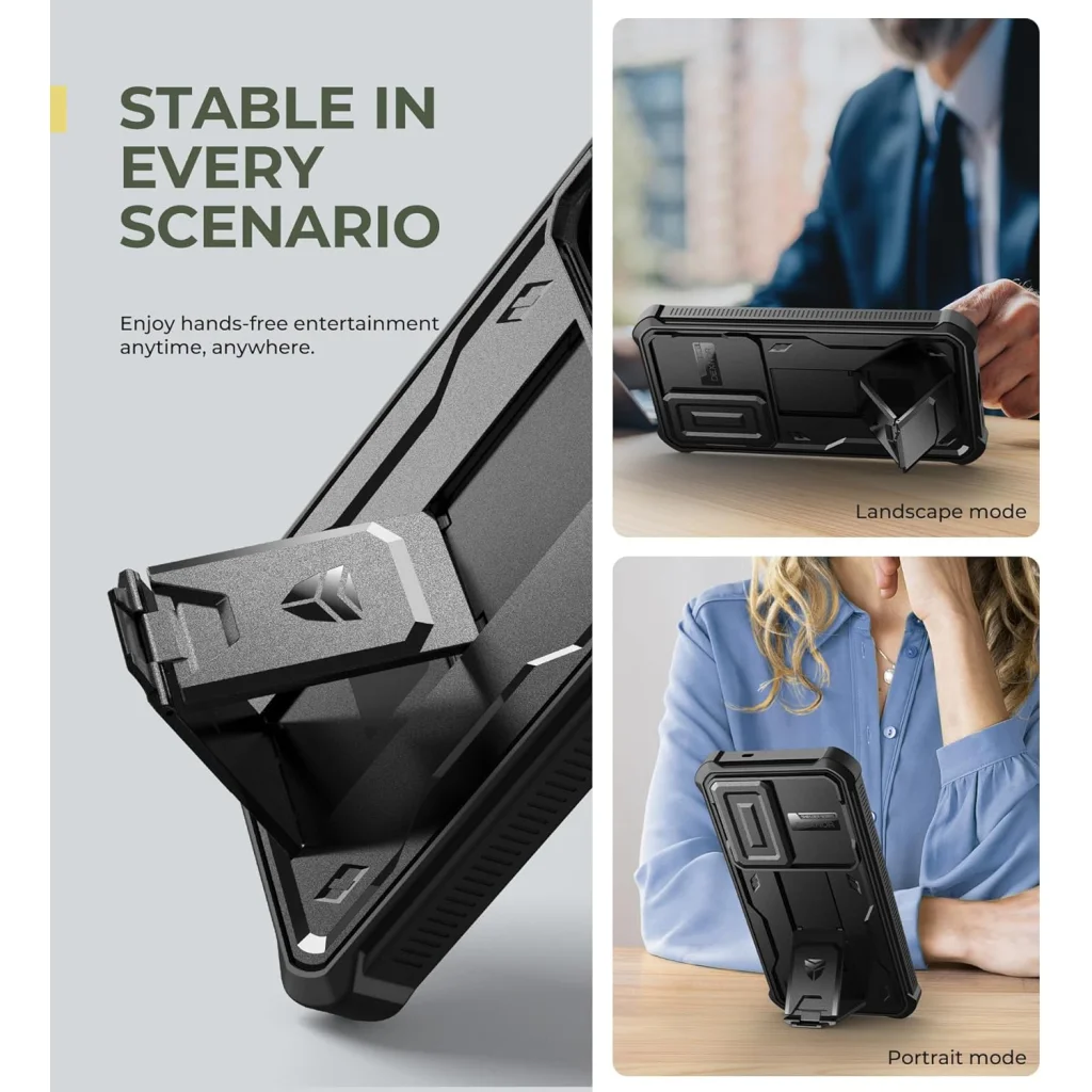 Praktikus kihajtható állvány és gyűrűtartó: Élvezze a kéz nélküli szórakozást bárhol, bármikor! A beépített kihajtható állvány segítségével kényelmesen nézhet videókat fekvő (landscape) és álló (portrait) módban egyaránt. Használja gyűrűtartóként is a biztonságos, egykezes fogásért fotózás vagy videózás közben.