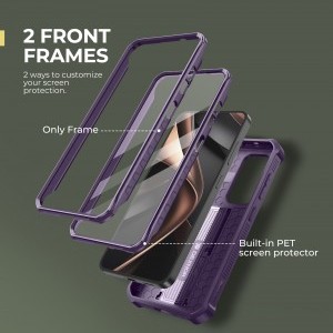- Sokoldalú kijelzővédelem: A Dexnor tok két előlapi kerettel érkezik, így Ön választhatja ki a készülékéhez leginkább illő védelmet. Egyik keret beépített, karcálló PET képernyővédő fóliával rendelkezik, amely támogatja a Touch ID ujjlenyomat-felismerést. A másik keret képernyővédő nélküli, kompatibilis a saját edzett üvegfóliájával. A megemelt élek emellett extra védelmet biztosítanak a képernyőnek a karcolások és leejtések ellen.