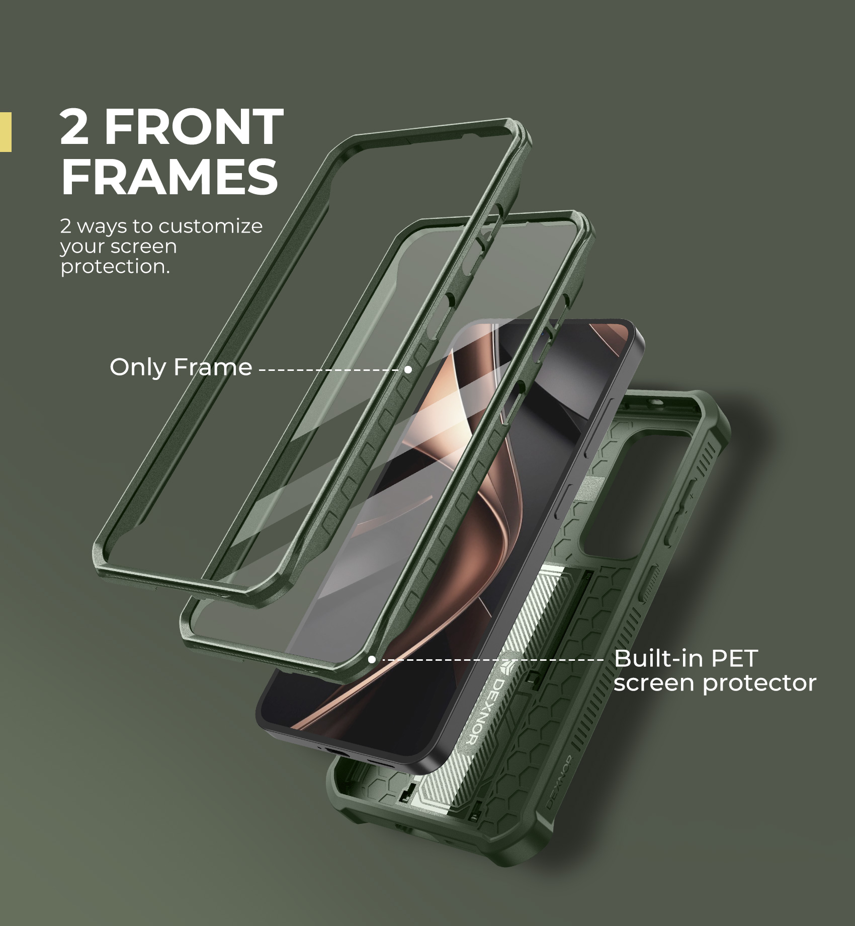 A Dexnor tok rendkívüli rugalmasságot kínál a képernyővédelem terén, hiszen két előlappal együtt érkezik: