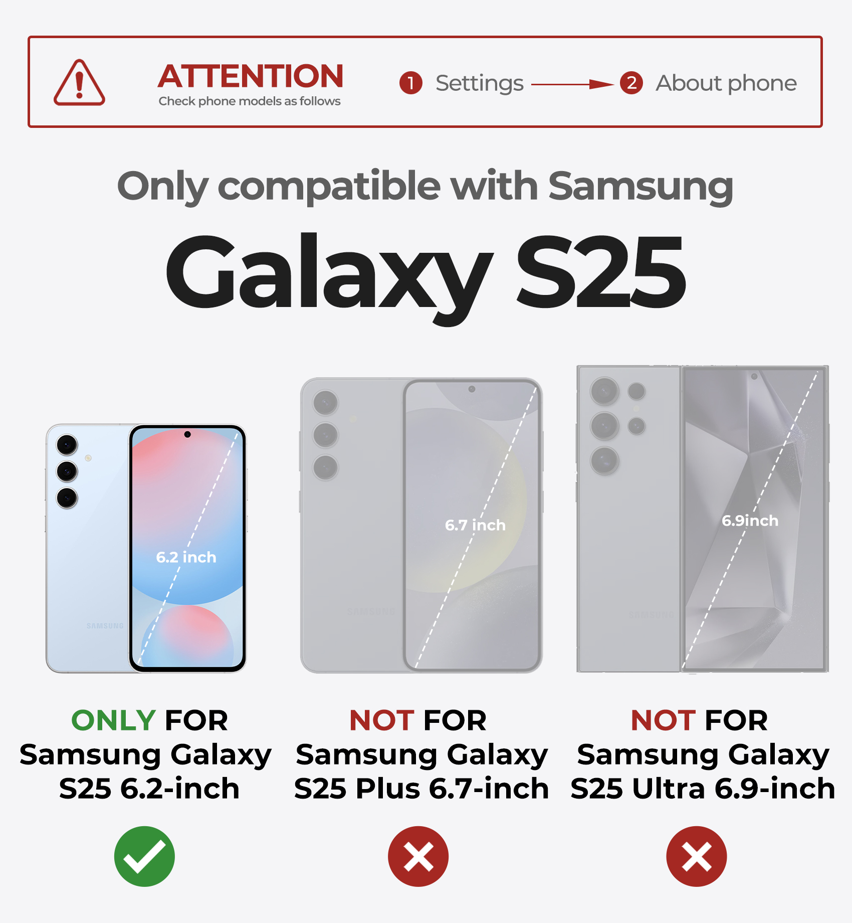 Kérjük, vegye figyelembe, hogy ez a Dexnor tok kizárólag a Samsung Galaxy S25 6.2 hüvelykes modelljével kompatibilis.