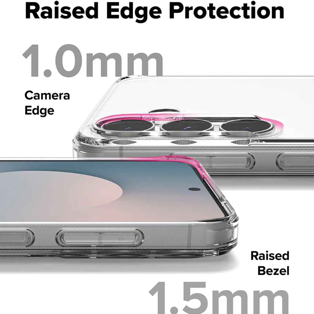 A Ringke Fusion tok precízen illeszkedik a Samsung Galaxy S25 FE minden kontúrjához, biztosítva a tökéletes hozzáférést az összes porthoz, gombhoz és funkcióhoz. Az emelt élek extra védelmet nyújtanak: a kamera körül 1.0 mm-es, a kijelző körül pedig 1.5 mm-es megemelés megóvja az érzékeny felületeket a karcolásoktól és a közvetlen érintkezéstől sík felületekre helyezve.