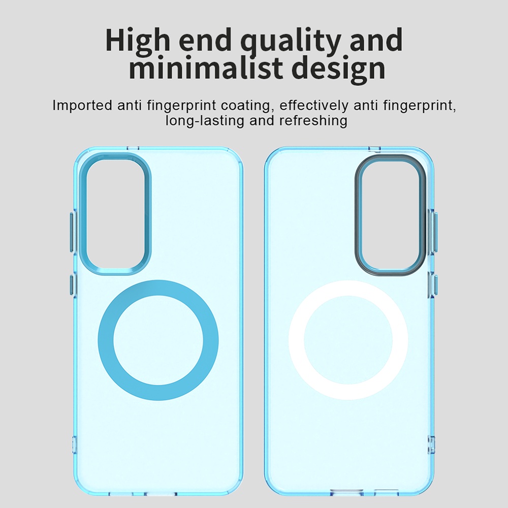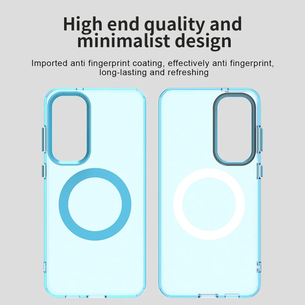 Ez a tok nemcsak véd, hanem vizuálisan is lenyűgöző. Az áttetsző, élénk kék árnyalatú CandyCase MagSafe tok letisztult, minimalista dizájnnal rendelkezik, amely tökéletesen illeszkedik a Samsung Galaxy S25 FE formavilágához. A kiváló minőségű, importált ujjlenyomat-ellenes bevonatnak köszönhetően a tok felülete mindig tiszta és friss marad, megelőzve a zsíros ujjlenyomatok felhalmozódását.
