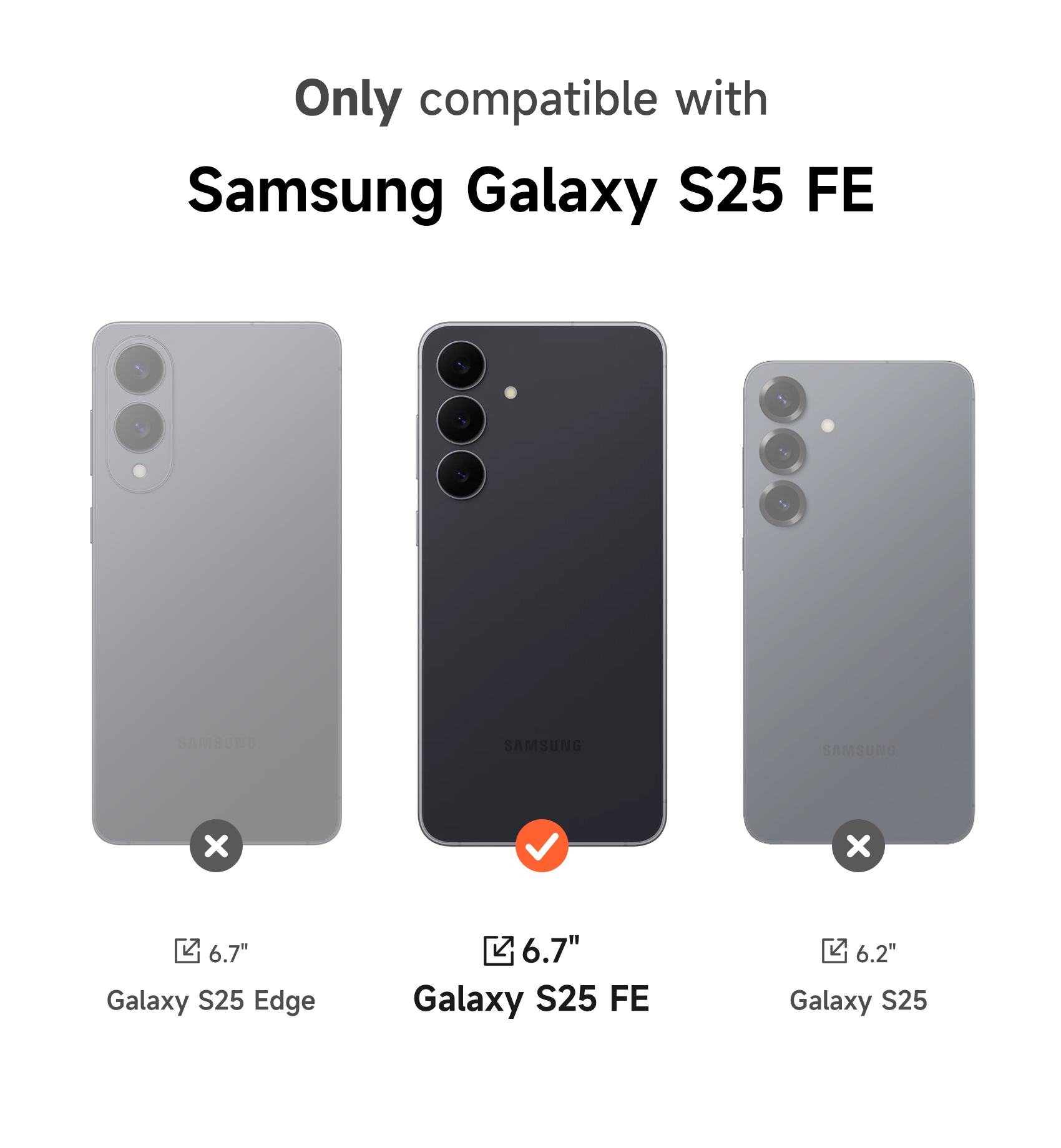 Fontos: Ez a tok kizárólag a Samsung Galaxy S25 FE (6.7") modellel kompatibilis. Kérjük, vegye figyelembe, hogy nem alkalmas a Galaxy S25 Edge (6.7") vagy a Galaxy S25 (6.2") készülékekhez.