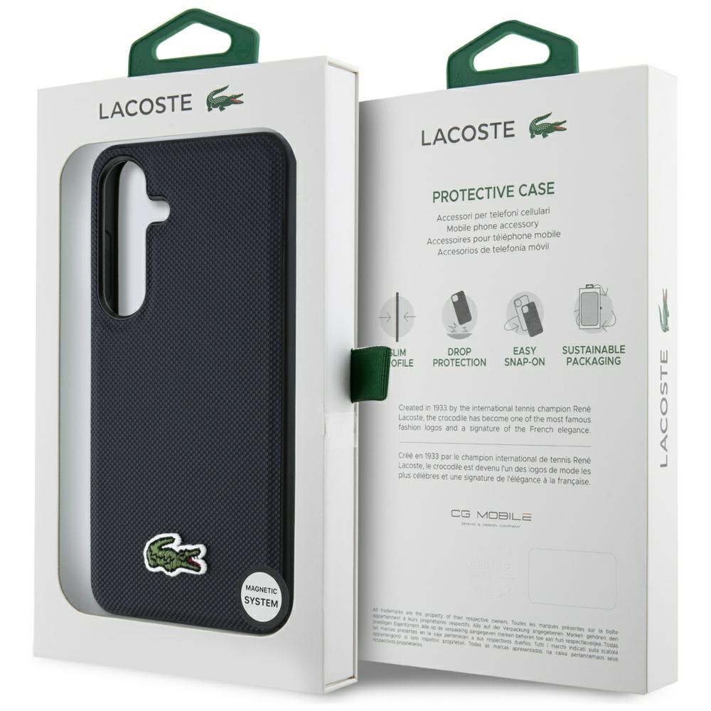A tok mágneses gyűrűvel van felszerelve, amely kompatibilis a MagSafe vezeték nélküli töltővel, biztosítva a gyors és egyszerű töltést. A beépített mágnesek a tokban tökéletesen igazodnak a felhasználó telefonjához, és erős rögzítést biztosítanak a MagSafe töltőhöz. A tok a Lacoste márka licencével készült.