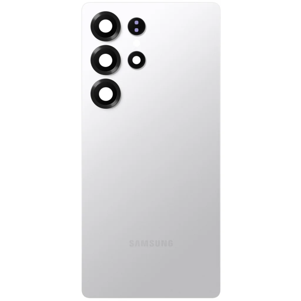 Samsung Galaxy S25 Ultra S938 akkumulátorfedél - Titanium szürke. Tartalék alkatrész, amelyet a Samsung licenc alatt használnak a telefon sérült részének cseréjére. Tartalmazza a ragasztót és a kameraüveget.
