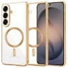 Válaszd az átlátszó luxust, amely lehetővé teszi, hogy telefonod eredeti szépsége és az ikonikus Samsung logó is látható maradjon. Az arany színű keret és a MagSafe gyűrű diszkrét, mégis feltűnő eleganciát kölcsönöz a készüléknek, kiemelve annak prémium jellegét. Ez a tok nem takarja el, hanem hangsúlyozza a Galaxy S26 vonalait, legyen szó egy üzleti tárgyalásról, egy laza kávézásról vagy egy önfeledt szelfizésről.