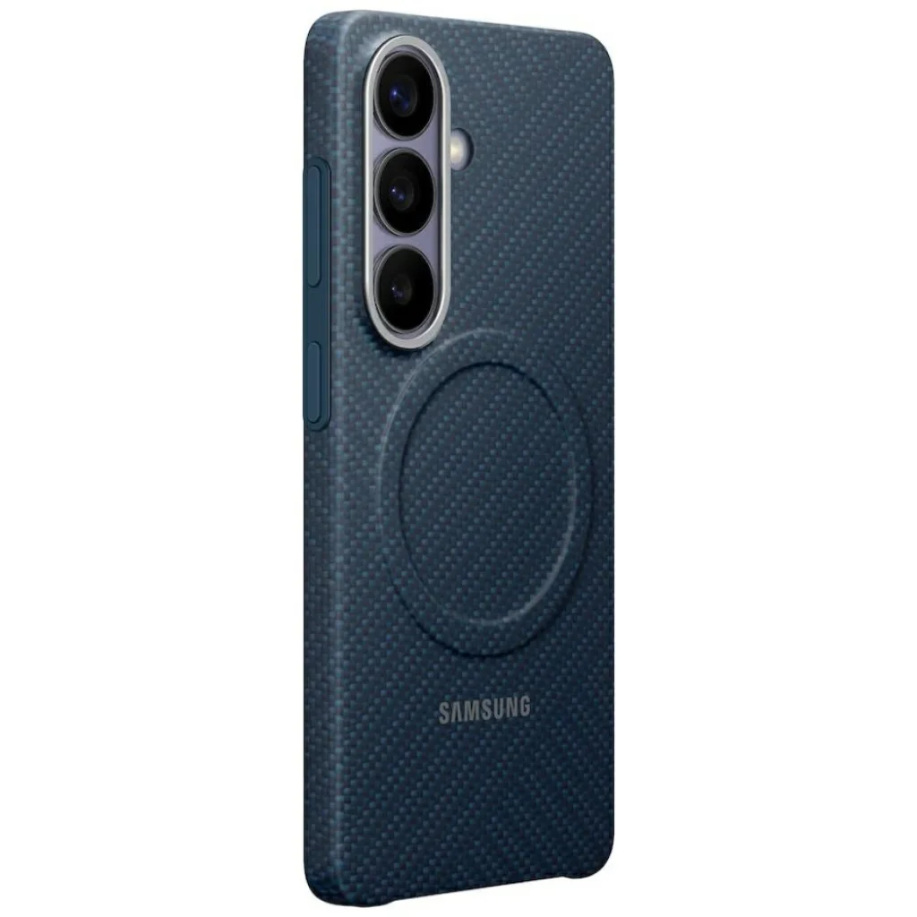 A Samsung Carbon Magnet elegáns megjelenést is kínál – a sötétkék színű, visszafogott kialakítás tökéletesen illeszkedik a Samsung Galaxy S26 modern stílusához. A tok nemcsak védi a készüléket, hanem exkluzív karaktert is kölcsönöz neki, kiemelve annak korszerű megjelenését.