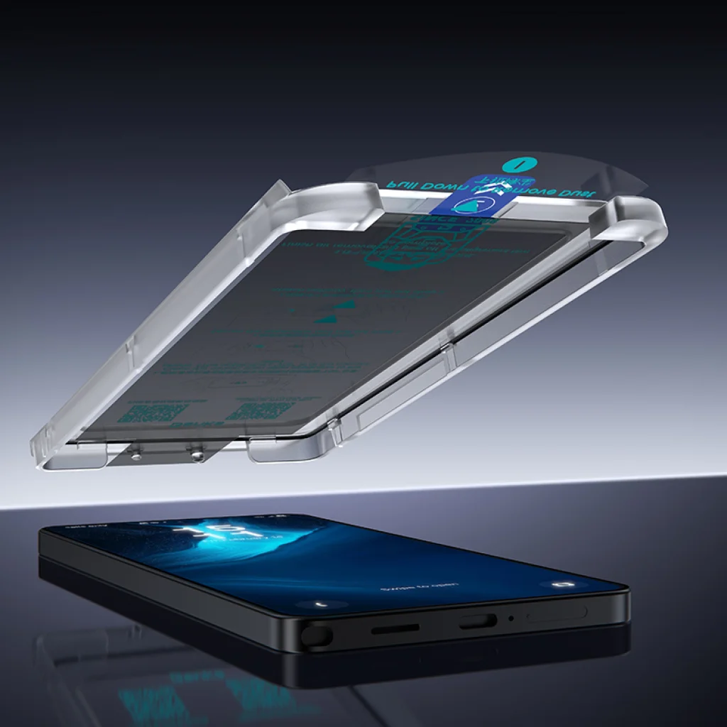 - Egyszerű, buborékmentes telepítés: A mellékelt, innovatív telepítőkeretnek köszönhetően az üvegfólia felhelyezése rendkívül egyszerű és pontos, garantálva a tökéletesen buborékmentes eredményt, mindenki számára.