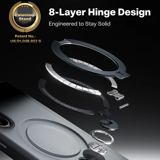 A Torras Ostand Spin Sorozat tok szíve az innovatív, integrált és rugalmas állvány, amely elnyerte az Egyesült Államok Szabadalmi Hivatalának elismerését (Pat. No.: US D1,038,922 S). Ez a szabadalmaztatott, 8-rétegű csuklópánt dizájn rendkívüli tartósságot és stabilitást garantál: