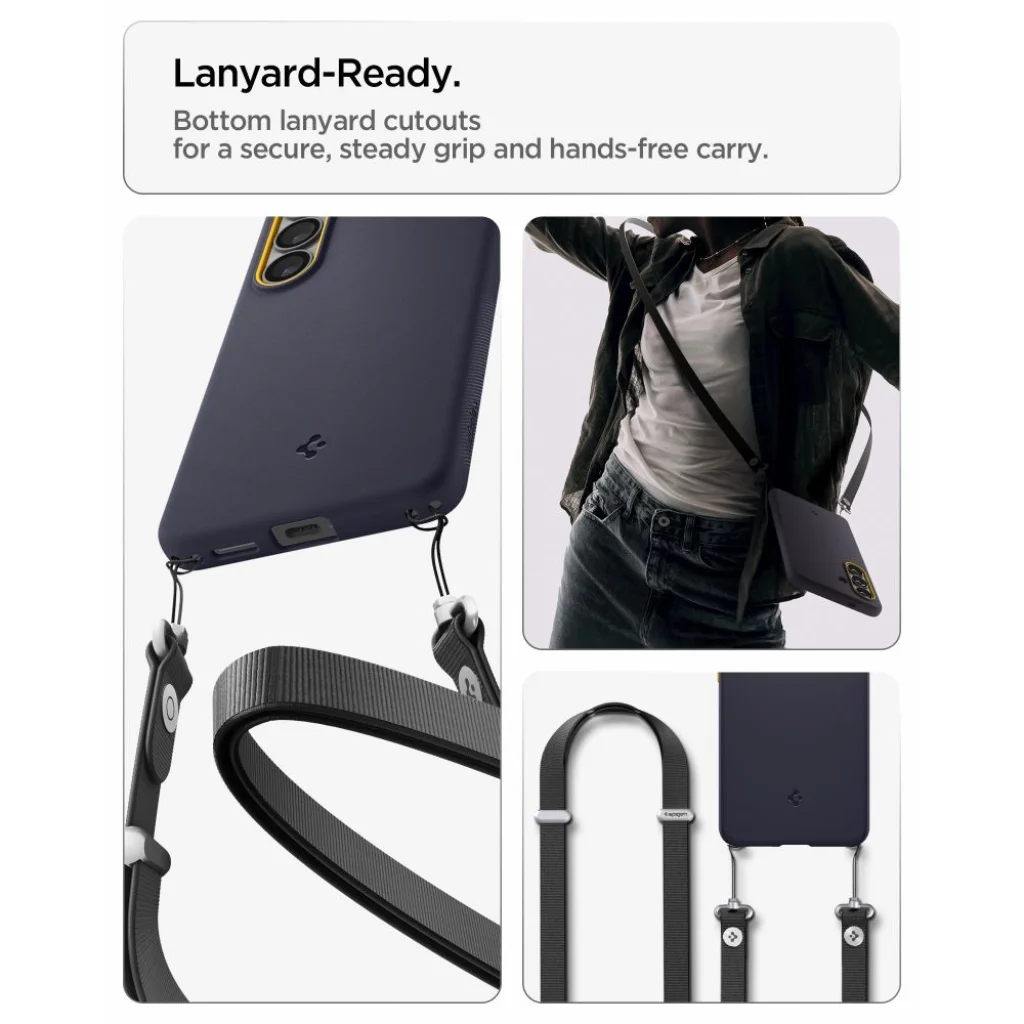 • Zsinórra előkészítve: Az alsó részen található speciális kivágások lehetővé teszik, hogy telefonját zsinórral hordja, így biztonságosan, kényelmesen és kéz nélkül szállíthatja készülékét.