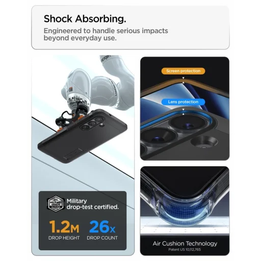 - Air Cushion technológia: A sarkokban található légpárnás technológia hatékonyan nyeli el a leesések során fellépő ütközéseket, megvédve a telefon legérzékenyebb pontjait.