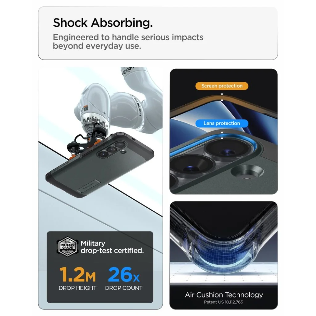 • Air Cushion Technology®: A sarkokban található légpárnás technológia hatékonyan elnyeli az ütéseket esés esetén, kritikus védelmet nyújtva a telefon legérzékenyebb részeinek.