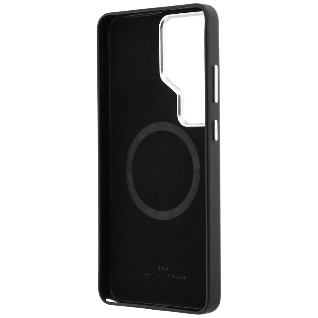 A BMW Sign Metal Logo tok tartósságot és sportos jelleget ötvöz. Magas minőségű, finoman textúrázott felületű öko-bőrből készült, biztosítva a biztonságos fogást és elegáns megjelenést. A hátlapot egy fémből készült BMW logó díszíti, amely kiemeli a kollekció hitelességét és presztízsét. A tok teljes kompatibilitást biztosít a MagSafe rendszerrel, hatékony védelmet nyújt leesés esetén, és karcsú profillal rendelkezik, amely tökéletesen illeszkedik a telefonhoz. A fekete kamera keret és gombok modern és összetartó jelleget adnak az egésznek.