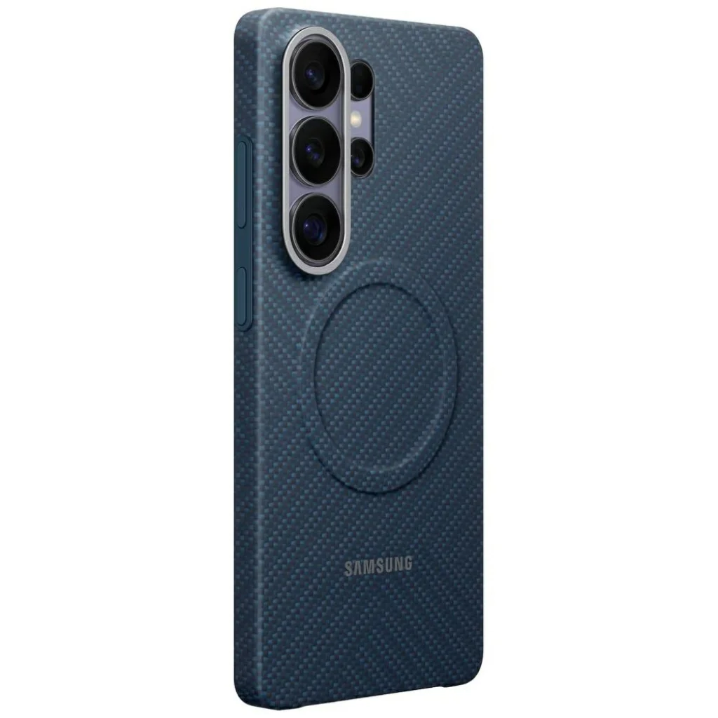 A Samsung Carbon Magnet tok elegáns megjelenéssel is rendelkezik – minimalista, sötétkék kialakítása és visszafogott felülete tökéletesen illeszkedik a Samsung Galaxy S26 Ultra modern stílusához. A tok nemcsak védi a készüléket, hanem exkluzív karaktert is kölcsönöz neki, kiemelve annak korszerű esztétikáját.