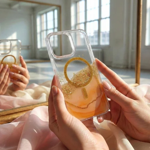 Az epoxi használata kiemeli a minta mélységét, fényt ad a borítónak, és olyan vizuális hatást biztosít, amely idővel nem veszít intenzitásából. Aranypöttyök és lágy tónusváltások egy összeszedett, dinamikus kompozíciót alkotnak, amely felhívja a figyelmet és hangsúlyozza a tok térbeli hatását. A dizájn beleillik a személyes karakterrel és kifinomult vizuális kifejezéssel rendelkező kiegészítők trendjébe.