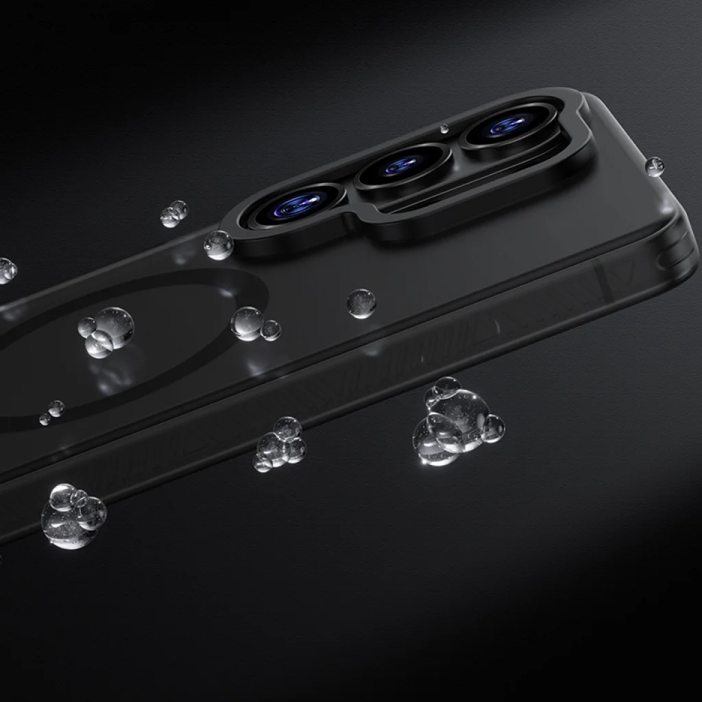 - Kristálytiszta védelem: Az enyhén áttetsző fekete (smoked black) design kiemeli a telefon eredeti eleganciáját, miközben a magas minőségű anyagok ellenállnak az ujjlenyomatoknak és az elszíneződésnek.