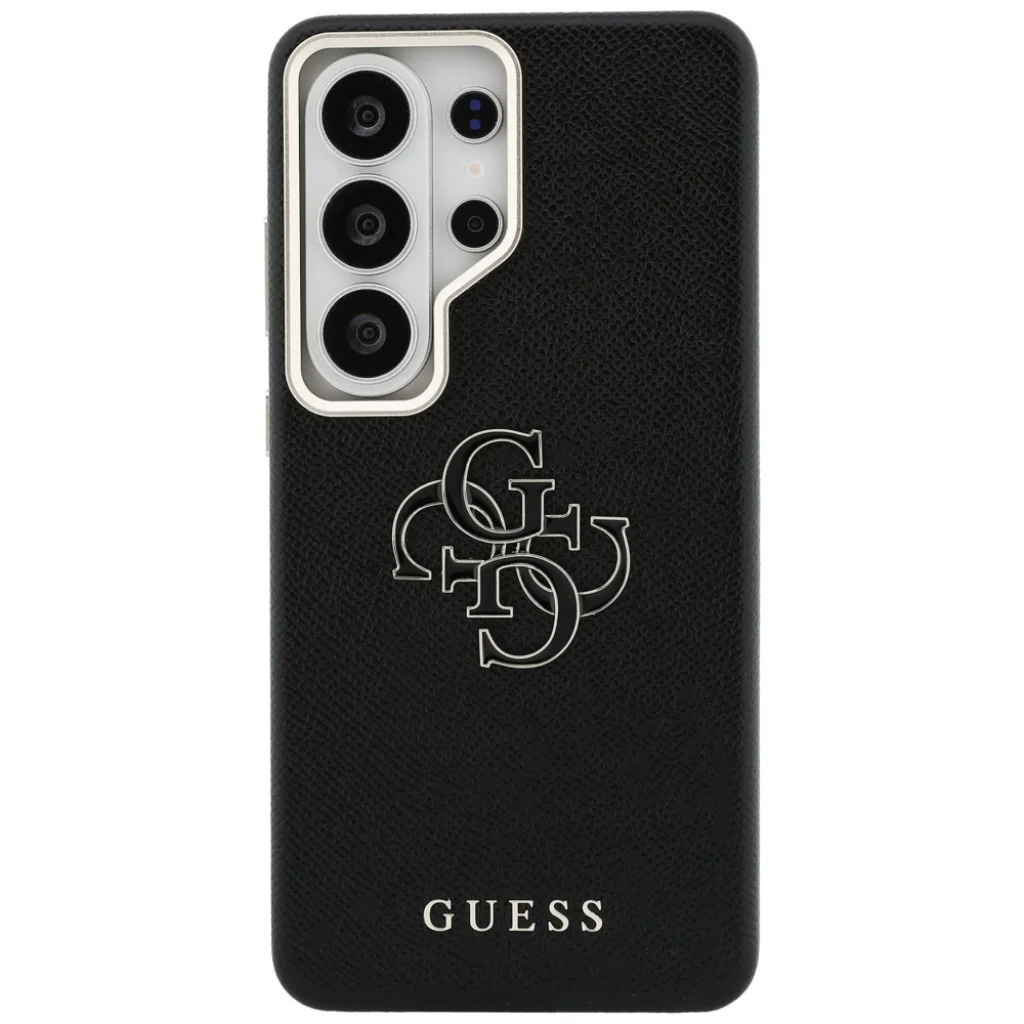 Stílusos Guess tok a Grained Big 4G Metal Logo kollekcióból, amely elegáns, felismerhető 4G mintával és arany GUESS logóval van díszítve.