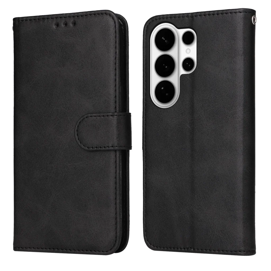 Samsung Galaxy S26 Ultra klasszikus PU bőr fliptok, tok – fekete