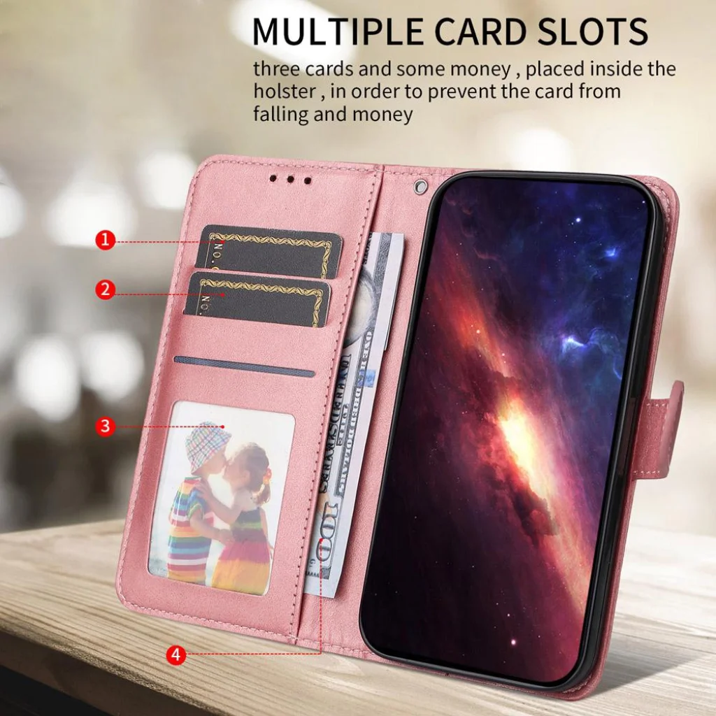 Ez a fliptok nem csak egy védelmi eszköz, hanem egy praktikus pénztárca is. Három kártyahelyet és egy készpénztartót tartalmaz, ahol biztonságosan tárolhatja hitelkártyáit, személyi igazolványát és bankjegyeit. A kártyatartó felületén található lyukak megkönnyítik a kártyák kivételét. A biztonságos mágneses záródás gondoskodik arról, hogy minden értéke rendszerezetten és biztonságosan maradjon a helyén, megakadályozva azok kiesését.