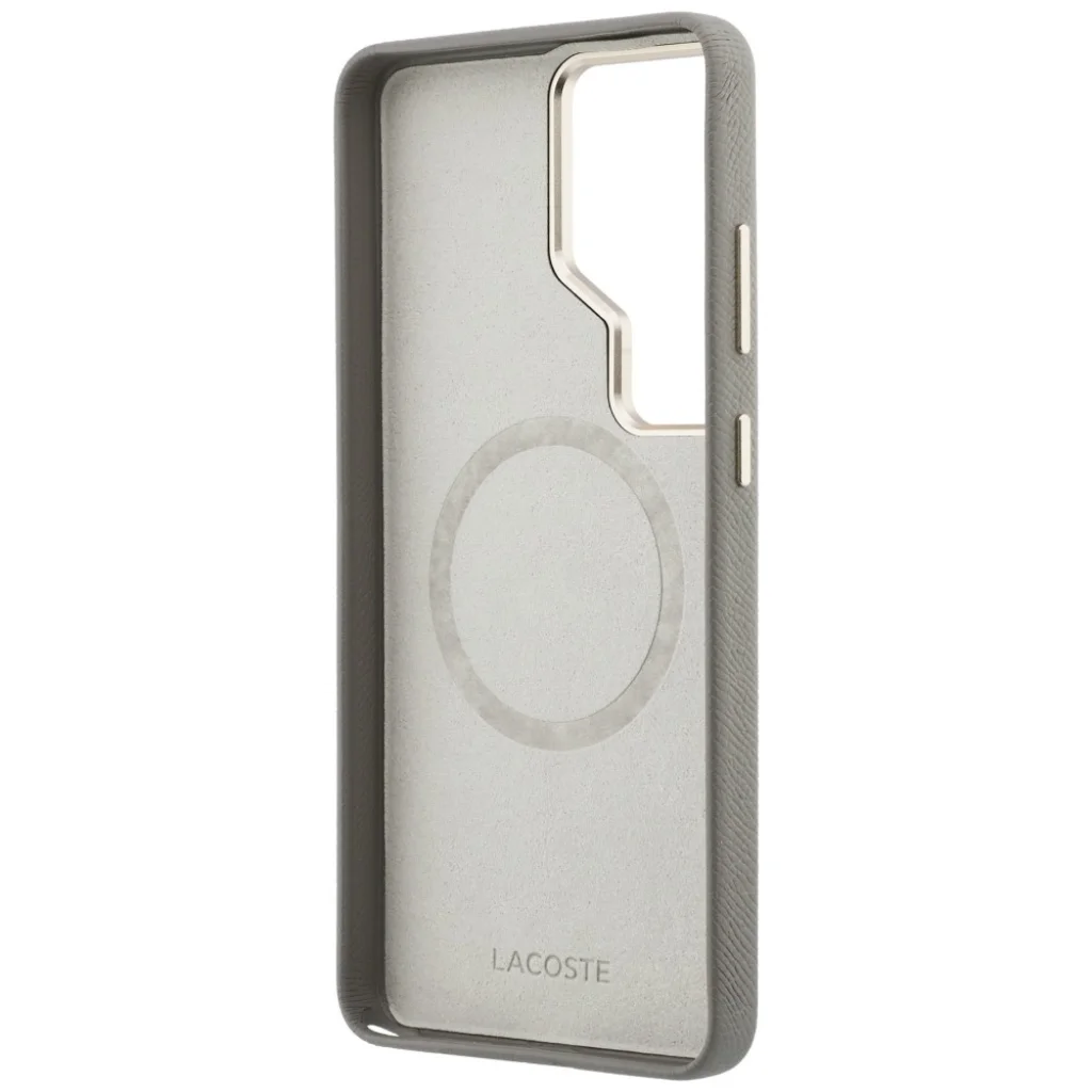 A tok minőségi ökobőrrel van bevonva, érdekes textúrával. Emellett a kollekciót egy arany Lacoste logó, valamint egy arany keret díszíti a kamera körül.