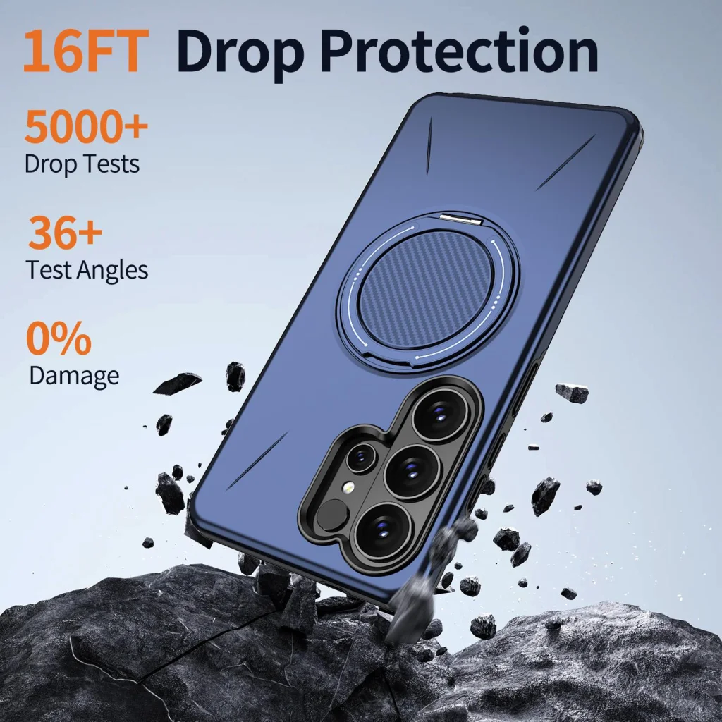- Kiemelkedő leejtésvédelem: A tokot több mint 5000 leejtési tesztnek vetették alá 36+ különböző szögből, 0% károsodással még akár 4,8 méteres (16 láb) magasságból is! Ez a kimagasló ellenállás nyugalmat biztosít a mindennapi használat során.