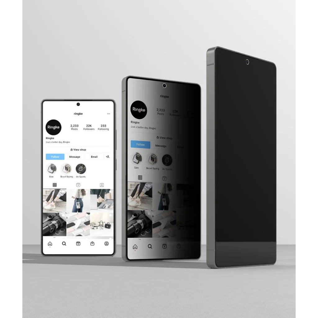 A Ringke Easy Slide Privacy üvegfólia egy fejlett adatvédelmi szűrővel van felszerelve, amely megakadályozza, hogy az oldalról betekintők lássák a képernyő tartalmát. Közvetlen nézéskor a kijelző tiszta és éles marad, azonban oldalról nézve elsötétedik, így megóvja érzékeny információit a kíváncsi tekintetektől. Akár zsúfolt tömegközlekedési eszközön utazik, egy kávézóban dolgozik, vagy bármely más nyilvános helyen tartózkodik, biztos lehet benne, hogy személyes adatai biztonságban vannak.