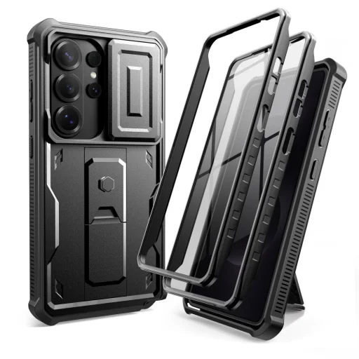 A Tech-Protect Kevlar Cam+ egy páncélos tok, amelyet a telefon átfogó védelmére terveztek. Az előrehaladott, két részből álló felépítés kemény PC páncélt kombinál a rugalmas, ütésálló TPU-val. A készlet tartalmaz két elülső keretet – beépített polikarbonát védőüveggel vagy anélkül –, amely lehetővé teszi, hogy a tokot az egyéni preferenciák és igények szerint igazítsa. További erősítések találhatók a sarkokban légpárnás védelmek formájában, melyek hatékonyan csillapítják az eséseket. Kihajtható állvánnyal rendelkezik, amely lehetővé teszi a telefon függőleges vagy vízszintes elhelyezését. A praktikus eltolható lencsevédő megóvja a kamerát a karcolásoktól és mechanikus sérülésektől, miközben megőrzi a kiváló képminőséget. Az emelt keretek a képernyő és a kamera körül további védelmet nyújtanak a felületekkel való érintkezés ellen. A tok katonai tanúsítvánnyal rendelkezik, igazolva a szigorú tartóssági szabványoknak való megfelelést. Precíz kivágások és gombvédők garantálják a készülék teljes funkcionalitását.