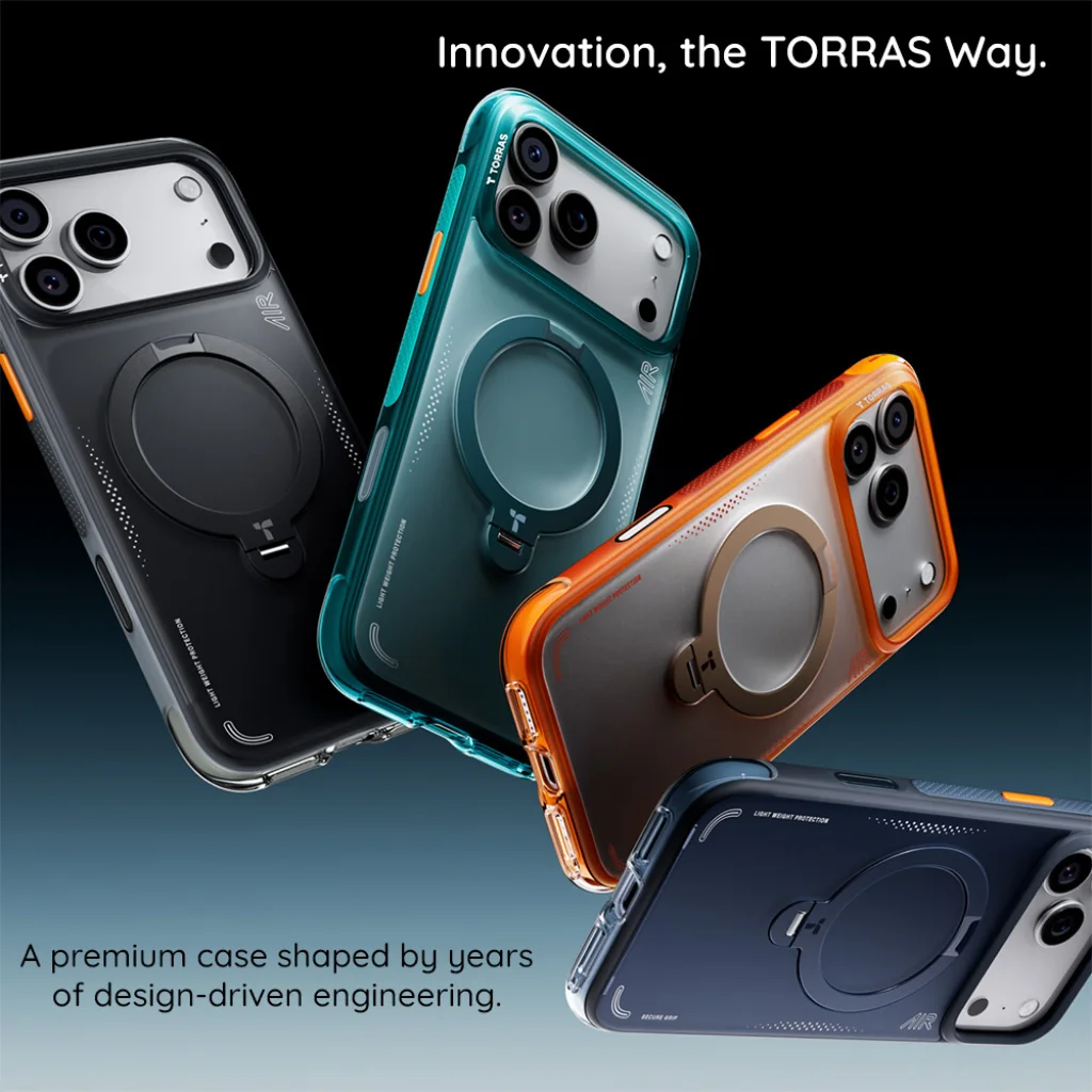 A Torras a "Innovation, the TORRAS Way" mottóval prémium minőségű tokokat fejleszt, amelyek évek óta tartó, design-vezérelt mérnöki munkával jöttek létre. A Torras Ostand Spin Air Series tok a tartósság, az esztétika és a funkcionalitás tökéletes ötvözete, amelyet a "LIGHT WEIGHT PROTECTION" és a "SECURE GRIP" feliratok is hirdetnek a tokon.