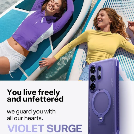 - Elegáns sötét lila szín ("Violet Surge"): A modern és stílusos sötét lila árnyalat kiemeli készülékét, miközben "szívvel-lélekkel" őrzi annak biztonságát.