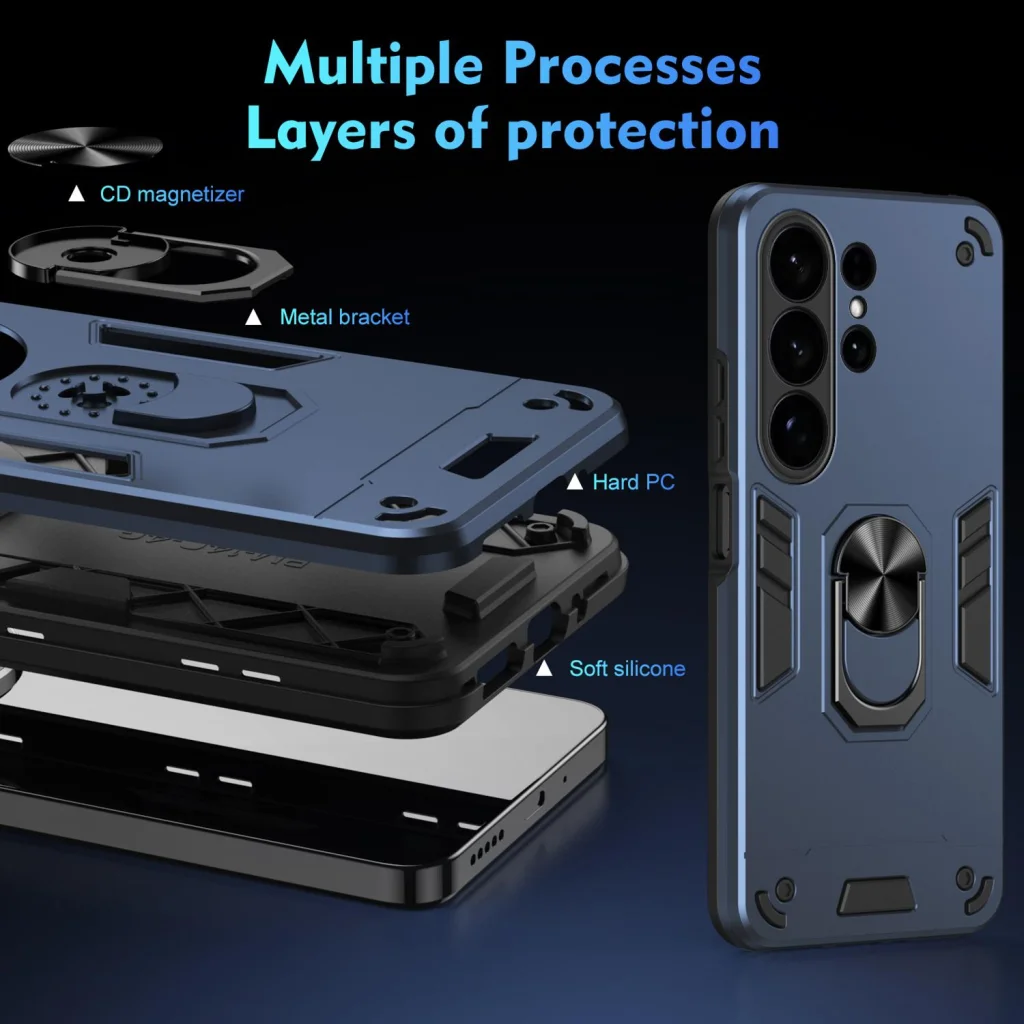 Samsung Galaxy S26 Ultra Ütésálló Fém Gyűrűs Telefon Tok (Kék)