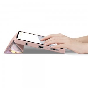 A könnyű, mégis rendkívül strapabíró SmartCase tokot úgy tervezték, hogy átfogó védelmet nyújtson a készüléknek a mechanikai sérülésekkel szemben minden irányból. A precízen illeszkedő konstrukció tökéletesen simul a készülékházhoz, garantálva a stabilitást és a biztonságot a mindennapi használat során. A tok matt kivitele elegáns megjelenést kölcsönöz, emellett hatékonyan véd az ujjlenyomatok és a szennyeződések ellen, fenntartva a készülék makulátlan tisztaságát. A SmartCase nemcsak védelmet, hanem funkcionalitást is kínál. Könnyedén alakítható praktikus állvánnyá, amely lehetővé teszi a kényelmes használatot különböző konfigurációkban — akár függőleges helyzetben, ideális videókonferenciákhoz vagy filmnézéshez, akár vízszintes helyzetben, tökéletes íráshoz, rajzoláshoz vagy stylus használatához.