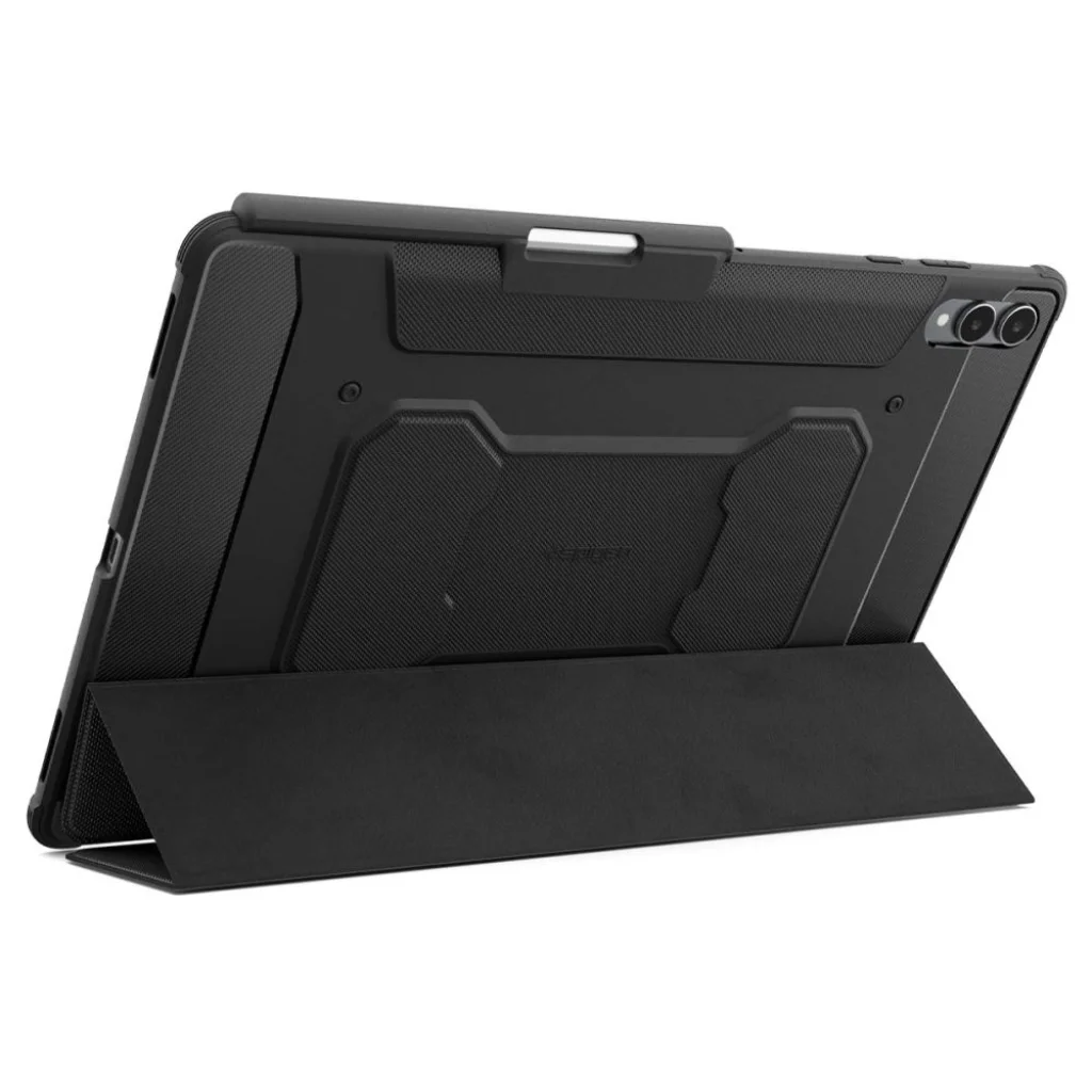 A Spigen Rugged Armor Pro egy magas minőségű tok a neves Spigen márkától, amely átfogó védelmet nyújt a készülék számára a kényelem és funkcionalitás feláldozása nélkül. Rugalmas TPU anyagból készült, puha szerkezettel, a sarkokon kiegészítő megerősítéseket kapott, amelyek hatékonyan nyelik el az ütéseket és védenek az esések következményeitől. A tok külön rögzítési helyet biztosít a ceruzának, míg a mágneses zár nemcsak a készüléket védi, hanem megakadályozza a stylus kiesését is. A magas szintű védelem ellenére a tok karcsú formáját megőrzi. Matt kivitelezés félig matt akcentusokkal és egy finom Spigen logóval, amely modern és elegáns karaktert kölcsönöz neki. A fedél belseje puha anyaggal van bélelve, amely hatékonyan megvédi a képernyőt a karcolásoktól zárás közben. Az egész megjelenése rendkívül esztétikus, ötvözi a stílust, kényelmet és biztonságot. Plusz előnye az automatikus ébresztés és altatás funkció a fedél nyitásakor és zárásakor.