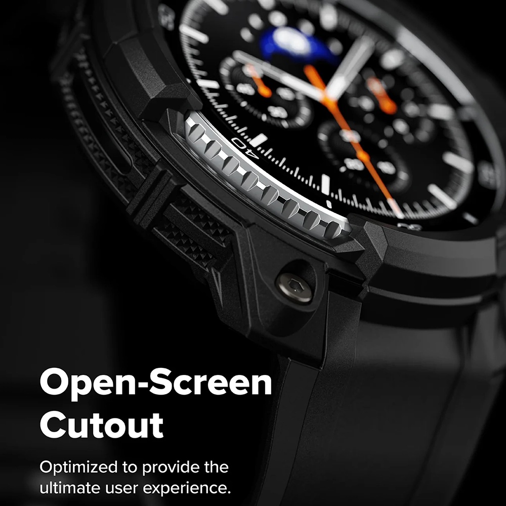 Ez a megoldás nem csak egy tok, hanem egy tok és szíj egyben, amely zökkenőmentes és egységes megjelenést biztosít. A nyitott képernyő kivágás optimalizált hozzáférést biztosít a kijelzőhöz és a forgatható lünettához, lehetővé téve a zavartalan használatot. A számlap jelölés design további esztétikai és funkcionális elemeket ad. A teljes hozzáférési design gondoskodik arról, hogy az óra összes gombja és érzékelője (például a pulzusmérő) akadálytalanul használható maradjon, beleértve a vezeték nélküli töltést is.
