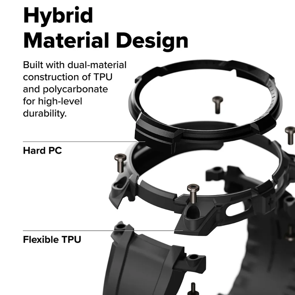 A Rugged Gear tokot úgy tervezték, hogy ellenálljon a mindennapi kihívásoknak és a legextrémebb kalandoknak is. A hibrid anyaghasználatnak köszönhetően a strapabíró polikarbonát (Hard PC) és a rugalmas TPU (hőre lágyuló poliuretán) tökéletes egyensúlyt teremt a tartósság és az ütéscsillapítás között. Ez a kettős rétegű konstrukció gondoskodik a Galaxy Watch8 magas szintű védelméről anélkül, hogy kompromisszumot kötnél a stílus terén.