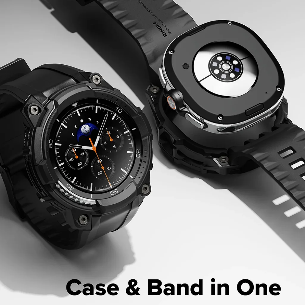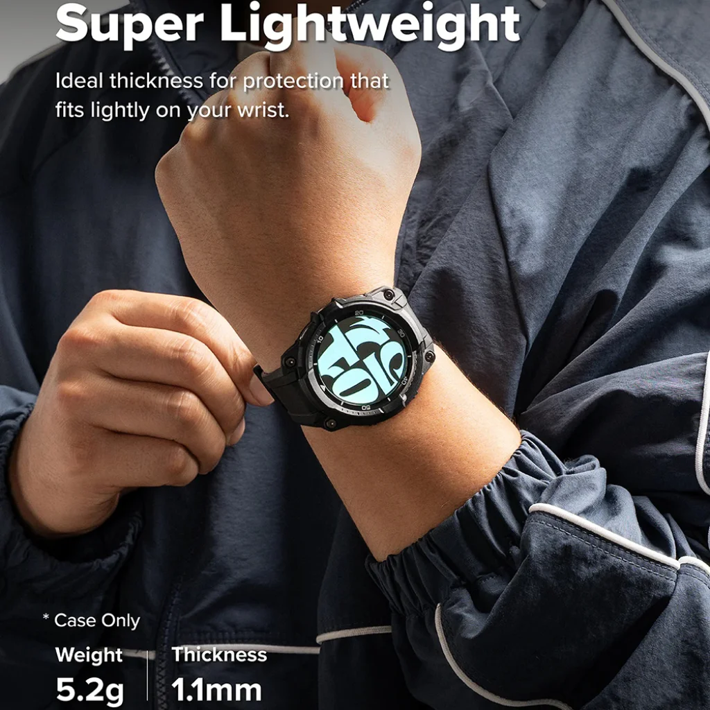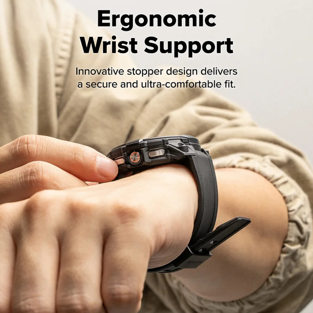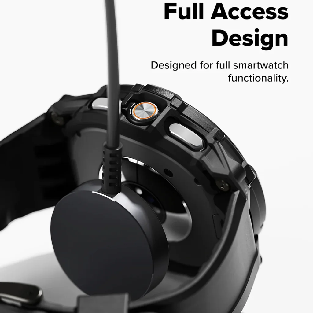 - Precíz kivágások: A "Full Access Design" gondoskodik arról, hogy az óra minden funkciója, gombja és a töltőportja is könnyen hozzáférhető maradjon a tok viselése közben is. Az "Open-Screen Cutout" dizájn védi a kijelzőt, miközben biztosítja a forgatható lünetta zavartalan használatát (amennyiben az óra rendelkezik ilyennel).