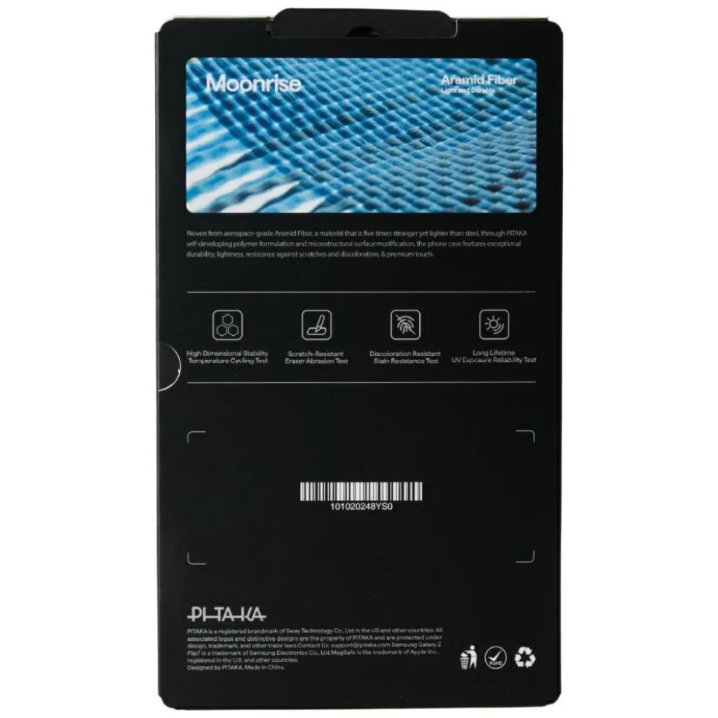 A PITAKA gondoskodott arról, hogy az Ultra-Vékony tok minden részlete tökéletesen legyen kidolgozva. A pontos kivágások könnyű hozzáférést biztosítanak a gombokhoz és portokhoz, míg a kamerát körülvevő megemelt élek védelmet nyújtanak a lencséknek a felületekkel való érintkezés ellen. A tartós aramid szál jellegzetes szövése modern és elegáns megjelenést kölcsönöz a toknek. Ez a verzió a különleges Sunset · Moonrise motívumot tartalmazza, amelyet a naplemente és a holdkelte átmenete ihletett, egyedi karaktert kölcsönözve a toknek. A dizájnt az új márka logója egészíti ki, amely finoman integrálódik a megjelenésbe. A texturált felület javítja a fogást, miközben hangsúlyozza a prémium stílust.