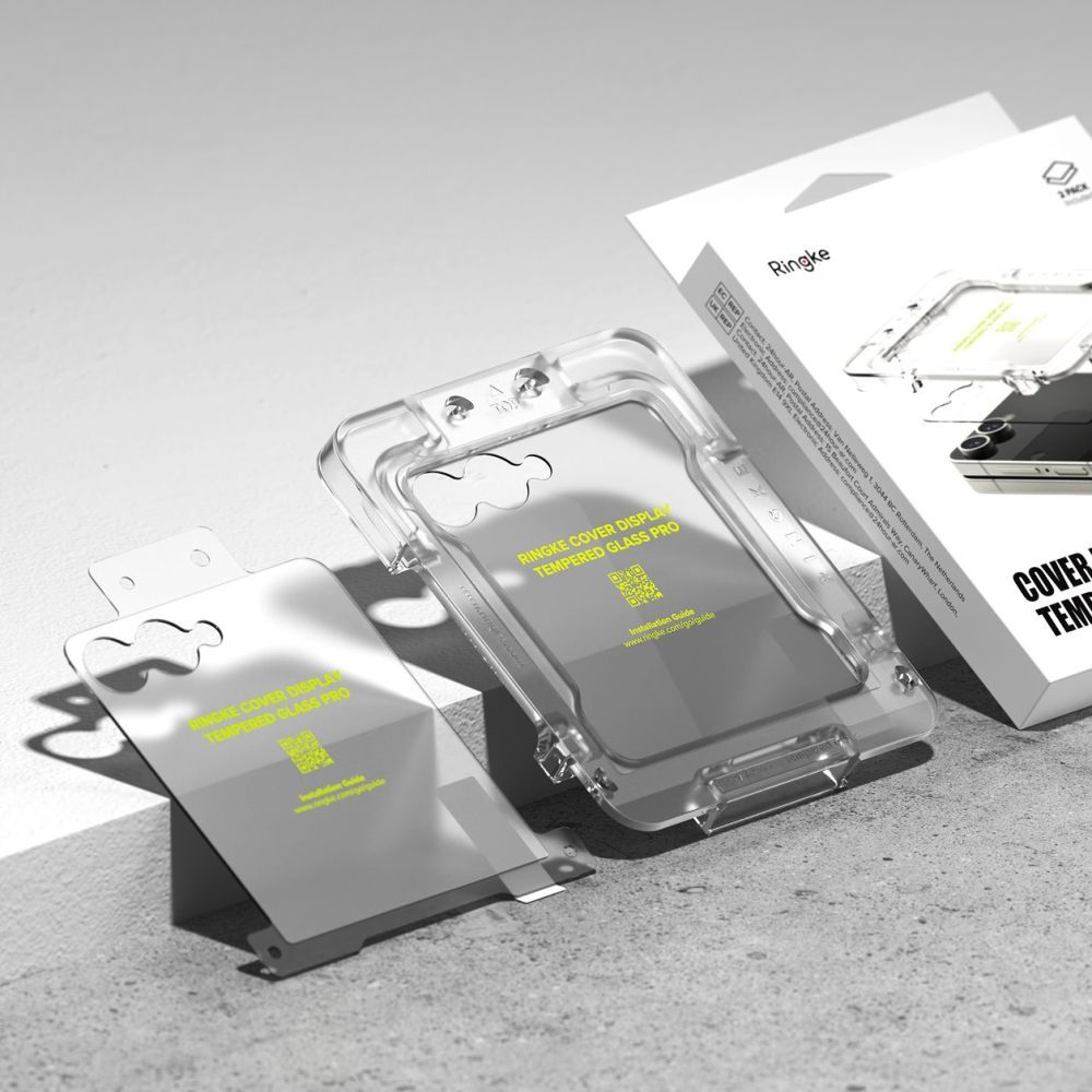 A Ringke Cover Display edzett üveg három rétegből áll: egy oleofób bevonatból, edzett üvegből és egy AB fóliából, ami növeli a tartósságát és a funkcionalitását. A szélsimító technológia lehetővé teszi, hogy a képernyővédő zökkenőmentesen integrálódjon a készülékbe, kiküszöbölve az éles széleket és elegáns megjelenést biztosítva.