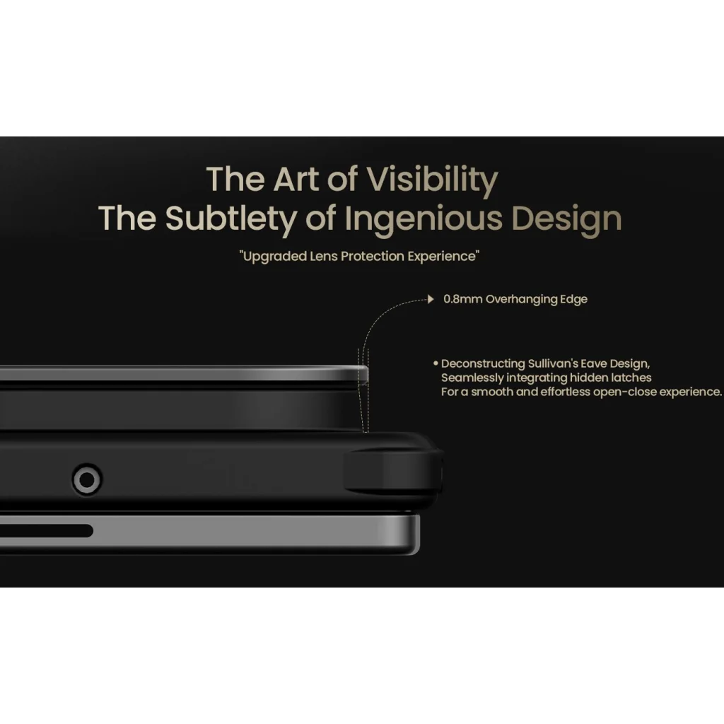- Kijelző és zsanér védelem: Az előlapi keret 0.5 mm-rel megemelkedik, extra védelmet nyújtva a kijelzőnek a karcolásokkal szemben. A tok zsanérvédelmet is magában foglal, amely "Deconstructing Sullivan's Eave Design" és zökkenőmentesen integrált rejtett reteszek révén biztosítja a telefon könnyed és hibátlan nyitását és zárását.