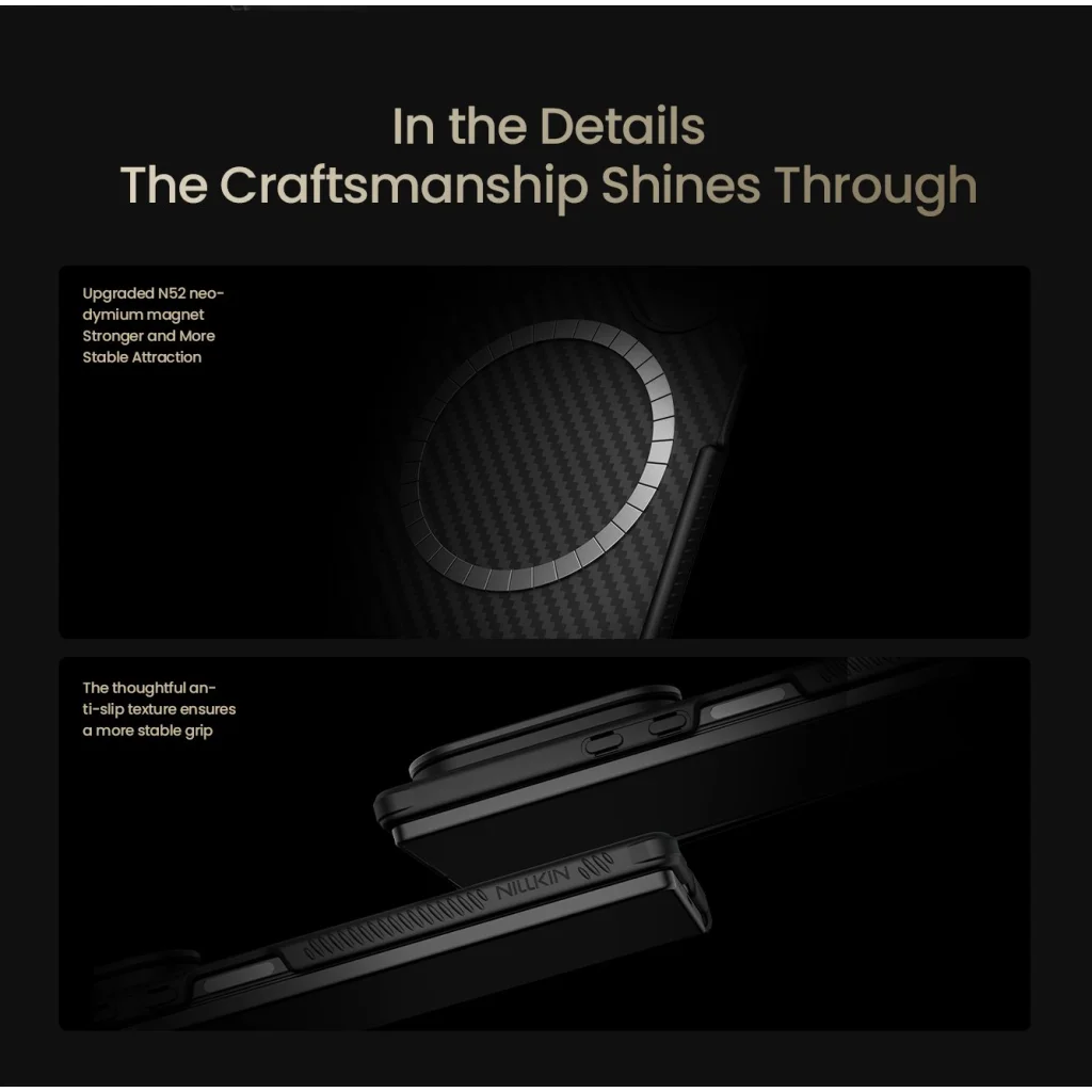 A "In the Details, The Craftsmanship Shines Through" jelmondat tökéletesen tükrözi a Nillkin CarboProp tok aprólékos kidolgozottságát.