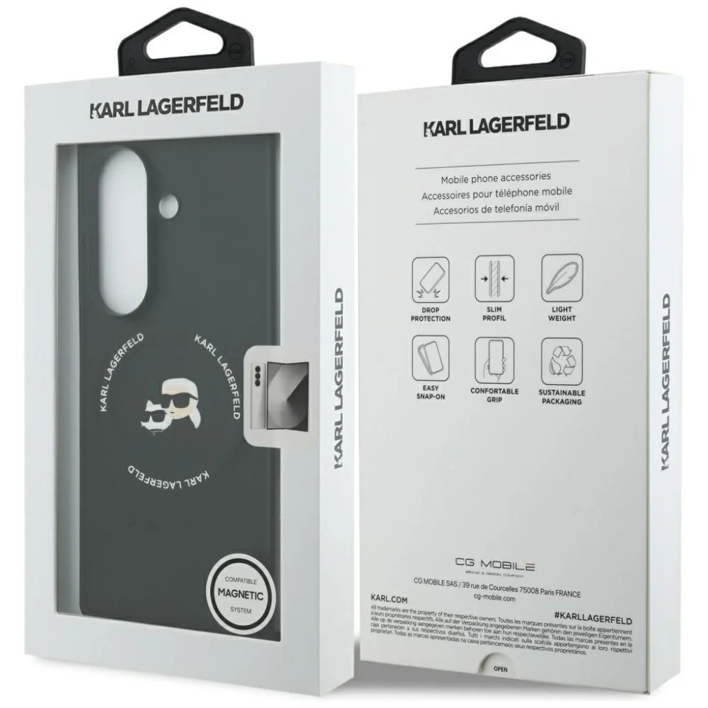 A Karl Lagerfeld Karl&Choupette tok stílust és védelmet kínál a legigényesebb okostelefon-felhasználók számára. Kiváló minőségű öko-bőrből készült, amely eleganciát és részletekre való odafigyelést sugároz. A jellegzetes nyomat, amelyen Karl Lagerfeld és macskája, Choupette látható, egyedi karaktert kölcsönöz. A tok megvédi a készüléket a leejtésektől és karcolásoktól, köszönhetően a megemelt széleknek és a megerősített szerkezetnek. A beépített MagSafe mágneses gyűrű lehetővé teszi a kényelmes vezeték nélküli töltést anélkül, hogy a tokot el kellene távolítani. Ideális választás azok számára, akik értékelik a luxust és a funkcionalitást a mindennapi telefonhasználat során.