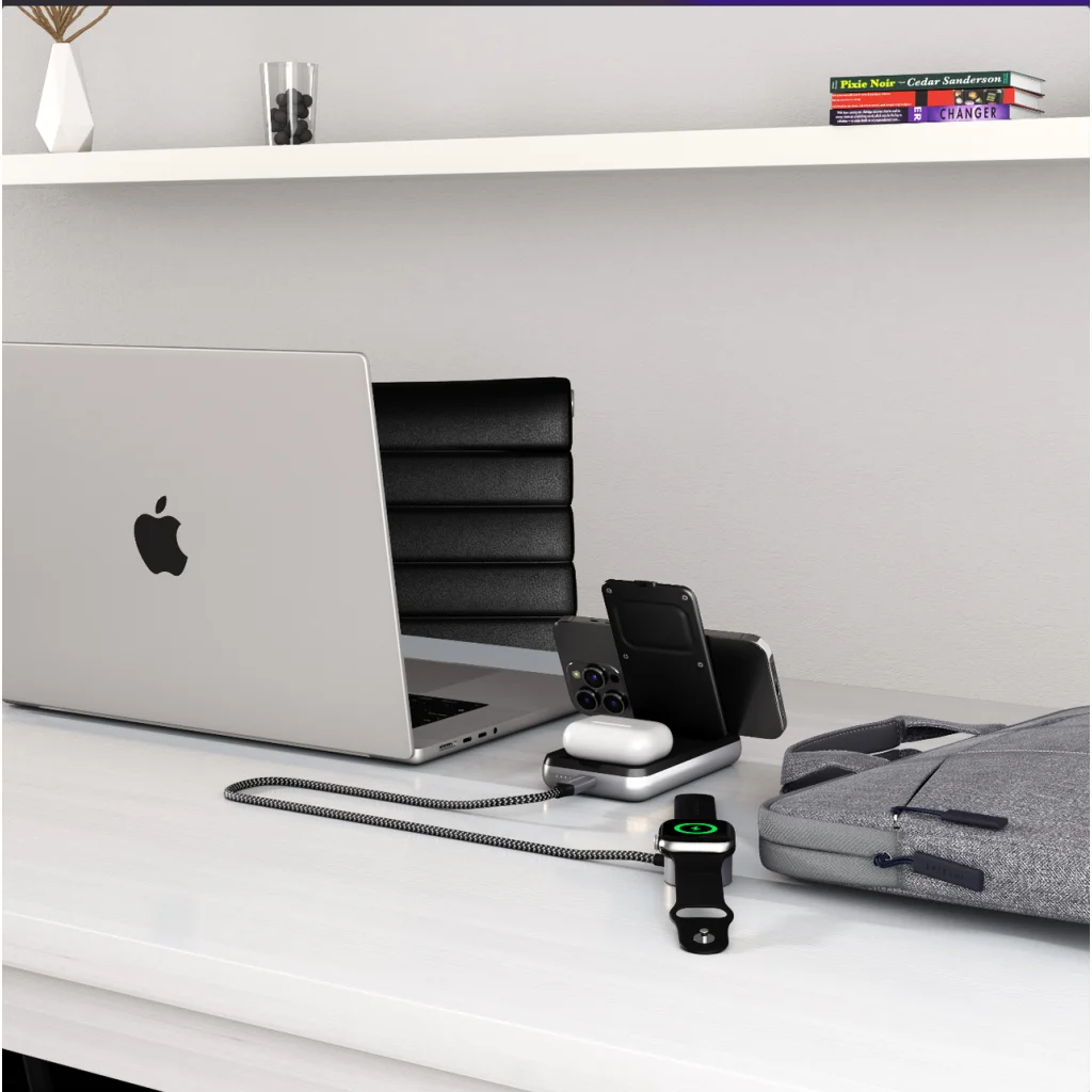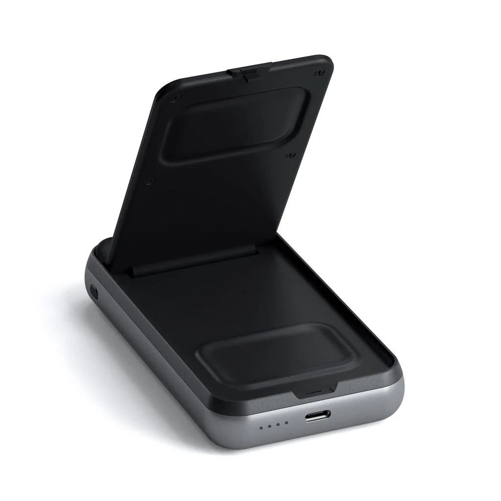 Tartalmaz egy vezeték nélküli töltőállványt vezeték nélküli töltőtalppal és egy további USB-C porttal, így akár három eszközt is tölthet egyszerre útközben 10000 mAh teljes akkumulátorkapacitással.
