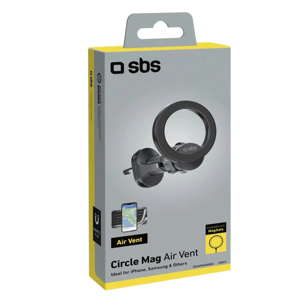 Az SBS TESUPMAGRING okostelefon tartó tökéletes megoldás a kényelmes, stabil és univerzális tartóra vágyó sofőrök számára. A MagSafe technológiával való kompatibilitás és a mellékelt fémlemez által a készülék kivételes stabilitást biztosít minden okostelefon számára, márkától függetlenül. A kényelmes csipesz gyors rögzítést tesz lehetővé minden típusú légkivezetőn, beleértve a kerekeket is, valamint a mágneses alap könnyű felhelyezést és stabil tartást nyújt a telefonnak. A 360°-ban forgatható alap lehetővé teszi a képernyő függőleges vagy vízszintes helyzetének szabad beállítását, maximális láthatóságot biztosítva vezetés közben. A kompakt méretek és az ABS anyagból készült masszív konstrukció tartósságot és modern megjelenést garantálnak. Válaszd az SBS TESUPMAGRING-et és élvezd a telefon biztonságos és kényelmes használatát minden utazás során!