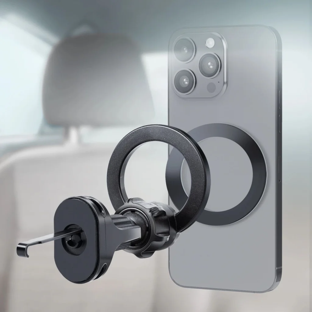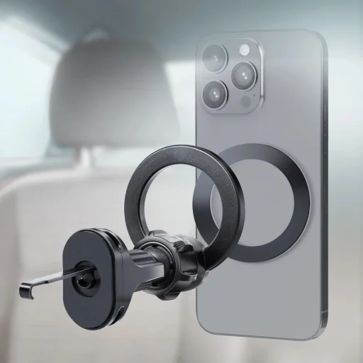 • MagSafe kompatibilitás: A mágneses alap biztonságosan tartja a MagSafe-kompatibilis iPhone-okat, míg a mellékelt fémlemez minden okostelefonnal való használatot lehetővé teszi.
