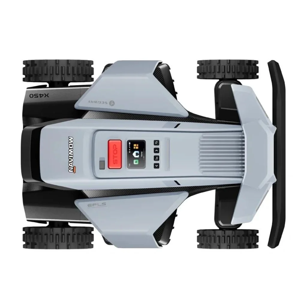A Segway Navimow X450E EU robotfűnyíró ideális választás nagy kertekhez, ha teljesen automatizált fűnyírást szeretne határolóvezeték telepítése nélkül. A készüléket akár 5000 m²-es területekhez tervezték, és az EFLS™ helymeghatározó rendszert használja Network RTK technológiával, 360°-os kamerával és VIO-val. Külső RTK antenna nélkül is működik, önállóan feltérképezi a területet, és még összetettebb körülmények között is stabil pozíciót tart. A négykerék-meghajtásnak köszönhetően akár 40°-os lejtőkkel is megbirkózik, míg a 43 cm-es vágási szélesség és a két darab 180 W-os vágómotor nagy teljesítményt biztosít nagy területeken.