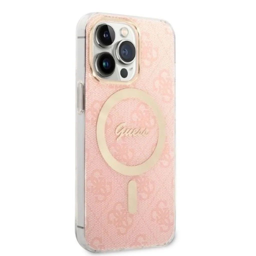 A stílusos tok a 4G Print kollekcióból exkluzív, világszerte ismert 4G dizájnnal rendelkezik. A 4G elemek elválaszthatatlan, jellegzetes motívumot jelentenek, amelyek különféle módokon jelen vannak a neves divatház különböző kollekcióiban, ami egyben a legmagasabb minőségű termékek megerősítése is, amelyek világszerte piacra kerülnek. A Guess koncepciójának jellegzetessége az egyensúlyozás a legújabb divatirányzatok és a klasszikus stílus között, miközben megőrzik projektjeik elegáns karakterét. A tok kamera körüli keret formájában megjelenő arany kiegészítők és a Guess divatház emblémája elit dimenziót adtak az egész tok számára. A 4G Print kollekcióhoz tartozó tok exkluzív dizájnt ötvözi a legmagasabb szintű kidolgozással. A termék tartós anyagokból készült – erős és kemény polikarbonát (hátlap) és rugalmas TPU szilikon (oldalak) kombinációjából –, amely biztonságosan körülveszi az eszközt, tökéletesen illeszkedve hozzá. A tok a szokatlan vizuális hatások mellett a telefon biztonságát is garantálja a nem kívánt karcolások és sérülések ellen. Ezen jellemzők kombinációja kiváló javaslatot ad mindenkinek, aki nemcsak funkcionalitást és magas szintű kidolgozást vár el az iPhone tokjától, hanem azt is szeretné, hogy telefonja exkluzív kiegészítője legyen a mindennapi ruháknak. A felhasználók kényelme érdekében a tok mágneses gyűrűvel lett felszerelve, amely kompatibilis a MagSafe technológiával, lehetővé téve a gyors, vezeték nélküli töltést.