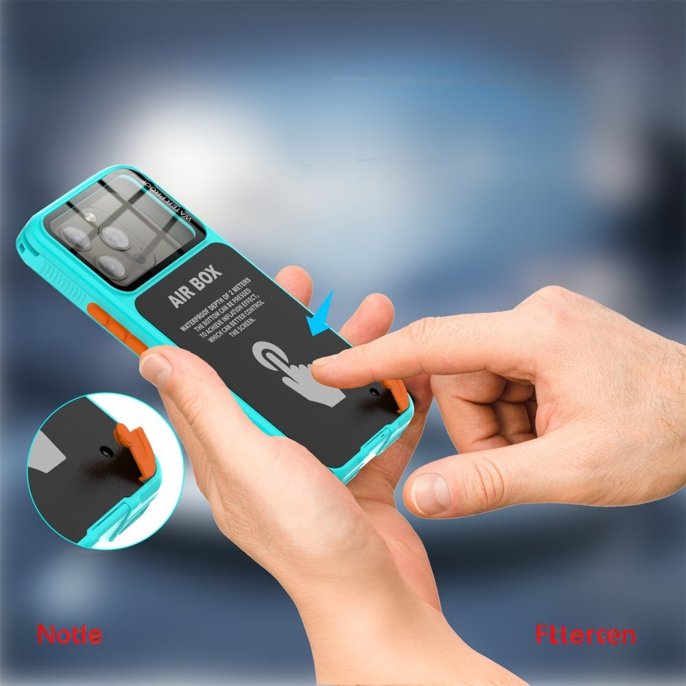 - Innovatív „Air Box” technológia a kijelzővezérlésért: Felejtsd el a frusztráló víz alatti érintési problémákat! Az egyedülálló „AIR BOX” rendszer lehetővé teszi, hogy a tok aljának megnyomásával légnyomást hozz létre, ami optimalizálja a kijelző érzékenységét és vezérlését még nedves vagy víz alatti körülmények között is. Ez a funkció biztosítja, hogy zavartalanul készíthess videókat és fényképeket a víz alatt.
