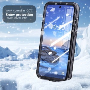 Ez a tok nemcsak víz- és ütésálló, hanem teljes körű, 360 fokos védelmet nyújt a por, homok és hó ellen is. A teljesen zárt kialakítás megakadályozza, hogy szennyeződések jussanak a telefon portjaiba vagy réseibe, így ideális választás építkezésekre, túrázásra, síelésre vagy bármilyen extrém tevékenységhez. A tok még extrém, -20°C-os hidegben is garantálja a telefon normál működését, megakadályozva a hó bejutását.