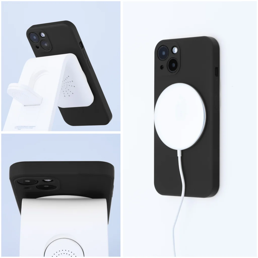 Biztosítsa okostelefonja kiváló védelmét a Silicone Mag Cover tok segítségével, melynek tartós és átlátszó bevonata védi az ütésektől és karcolásoktól. A termék kompatibilis a MagSafe technológiával, amely lehetővé teszi az induktív töltést. Az iPhone-hoz készült Silicone Mag Cover garantálja a kiváló minőségű anyagokat és a teljes kényelmet. Az innovatív MagSafe kompatibilitás lehetővé teszi, hogy a telefont Qi szabvány szerint töltse. Miután ráhelyezte a tokot, csupán hozzá kell érinteni egy vezeték nélküli töltőhöz, és a beépített mágnesek erősen rögzítik az okostelefont a töltési mezőhöz, lehetővé téve az energiapótlást. Ez a fajta kényelem biztosítja az eszköz használatának kényelmét mind a töltés, mind a mágneses autós tartókkal való használat során. A tok magas minőségű, matt színű szilikonból készült, amely elég tartós ahhoz, hogy hosszú ideig szolgáljon. Megakadályozza az esések és karcolások nem kívánt hatásait. A belső mikroszálas bélés további védelmet nyújt a készülék felületének. A csúszásmentes bevonat nem csúszik, ami kényelmessé teszi a tokot a kézben tartva. A megemelt képernyő körüli perem lefedi az okostelefon széleit, és az integrált kivágások megkönnyítik a portokhoz való hozzáférést, így könnyedén használhatja az összes funkciót. Műszaki adatok:Anyag: Szilikon, mikroszálas (belső bélés)Szín: FeketeKompatibilitás a MagSafe vezeték nélküli töltéssel.