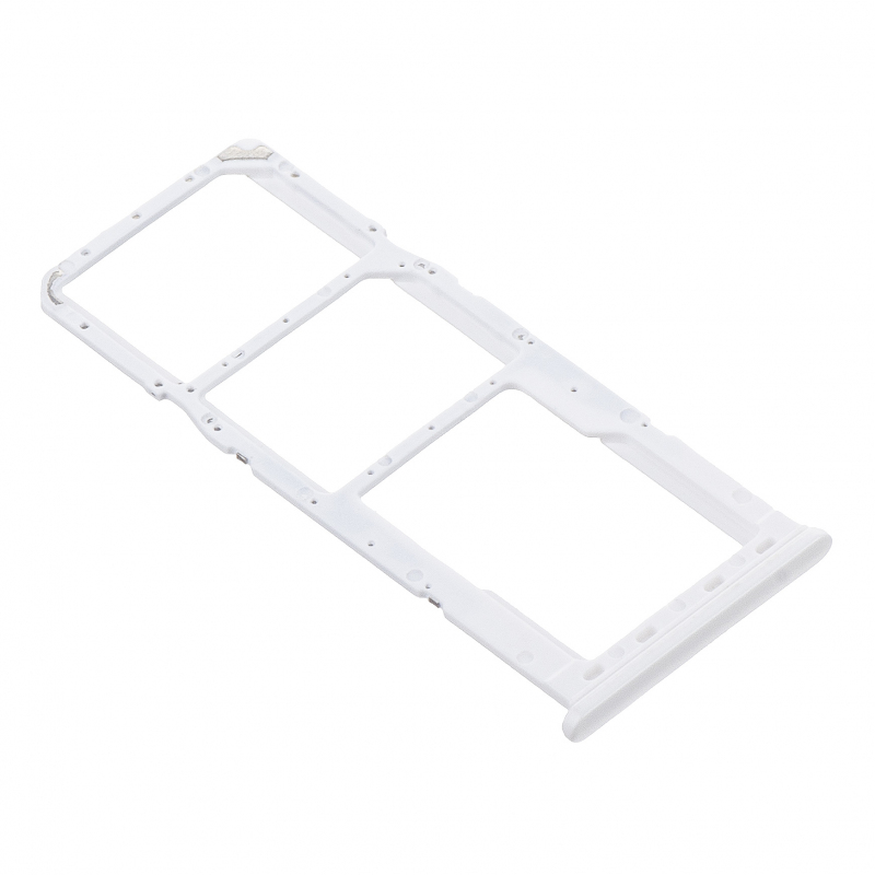 SIM tartó a Samsung Galaxy A21s A217-hez, fehér (GH98-45392B). Tartalék alkatrész a Samsung licenc alapján, amely a telefonon lévő sérült alkatrész cseréjére szolgál. 3 rekesszel rendelkezik: SIM1, SIM2, SD kártya.