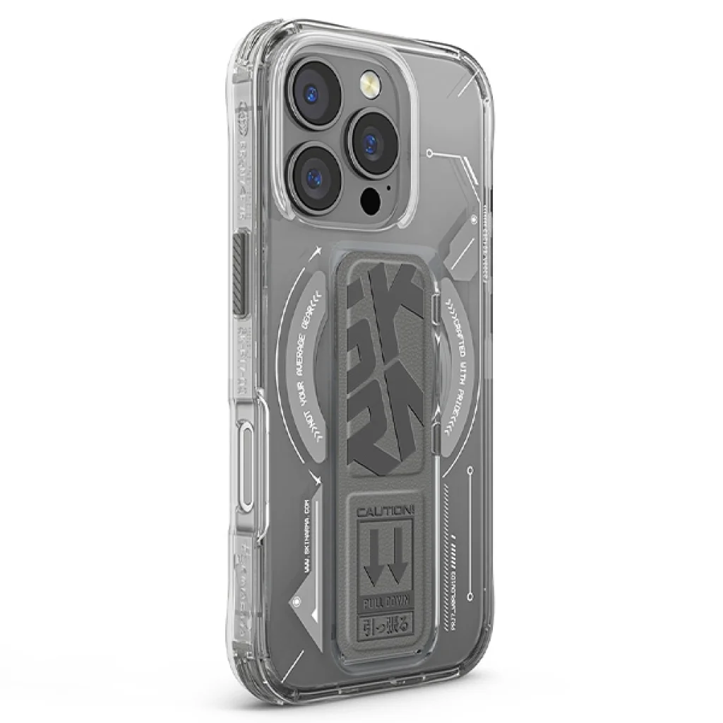 A HELIO egy félig átlátszó védőtok, amely modern kinézetével és innovatív funkcióival ragadja meg a figyelmet. A beépített állványfogantyú lehetővé teszi a telefon különböző szögekben való kényelmes elhelyezését, megkönnyítve a filmnézést vagy a videohívások lebonyolítását. A mágneses modul zökkenőmentesen működik vezeték nélküli töltőkkel, biztosítva a gyors és problémamentes napi töltést.